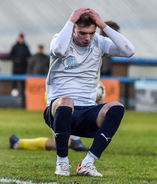 The game became ten aside when Barrett was shown a second yellow card with five regulation minutes remaining but the Deres created another chance when two of their substitutes combined. Richard Jimoh set up James Dyer but, rather than shooting first time, he tried to dummy Tonkin. The Hoops’ goalkeeper was not fooled though and got down to make the save.