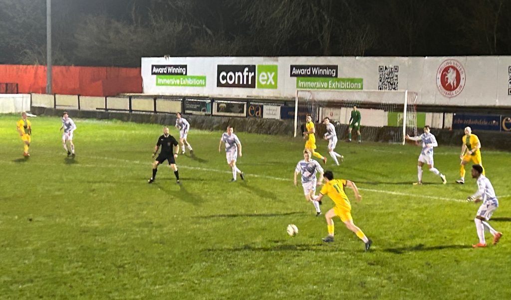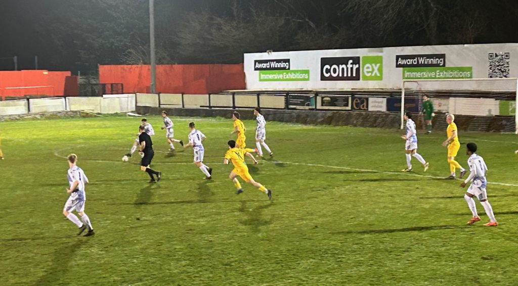 An early chance fell for the hosts when their high pressing created an error at the back. Freddie Baker feasted on it but clipped his first time effort with the outside of his boot past the post. Tommy Whitnell then had a header saved comfortably by Jake Glassborrow from Matthias Broomes’ cross.