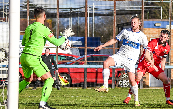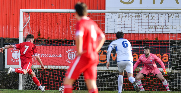 Just after the hour mark, Whitstable doubled their lead. George Monger mistimed a tackle in the penalty area on Oliver at the cost of a penalty and Oliver took the responsibility himself and fired home into the bottom corner.