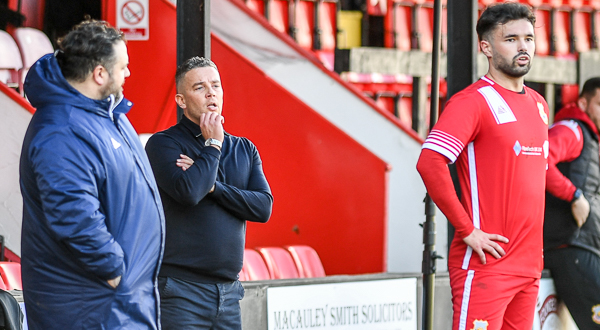 Rob Strachan headed wide from a Ryan Johnson cross, and was again off target when meeting Luke Rooney’s free kick. Another free kick from Rooney was delivered into the danger area and beat everyone other than Eason who made an outstanding diving save.