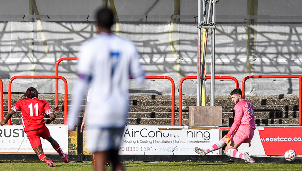 Six minutes later, Erith reduced the arrears from a penalty of their own. Tom Mills brought down Lear and Ryan Palmer sent Daniel Eason the wrong way from the spot.
