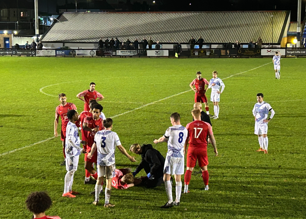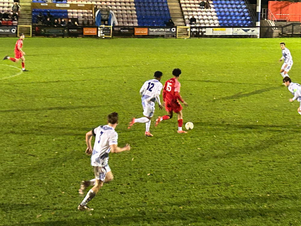 In the early stages, the hosts looked the livelier and Freddie Baker got through down the right but George Bentley came out quickly to make a good block. The visitors’ goalkeeper was again in action when getting down well to save from a shot by Connor French after he had been played in by Tommy Whitnell.