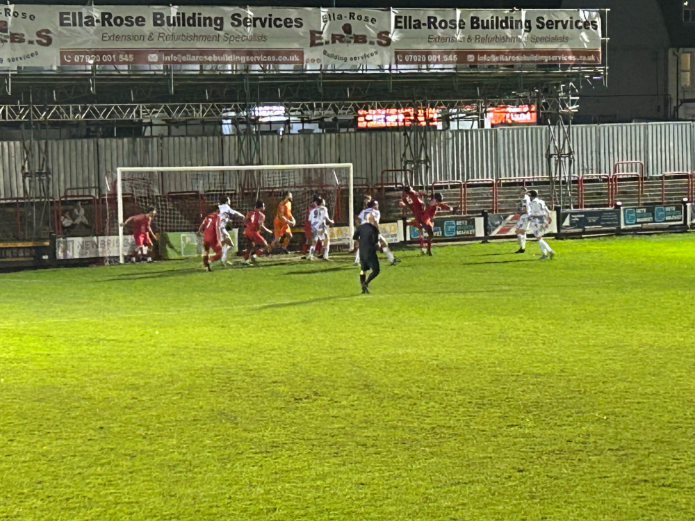 Another Ward low drive was saved by Alexander before the visitors were reduced to ten men when Lawal was sent to the sin-bin for ten minutes. Erith took full advantage two minutes in when Bentley made a great save from Cray’s header but Danny Lear was first to the rebound to finish.