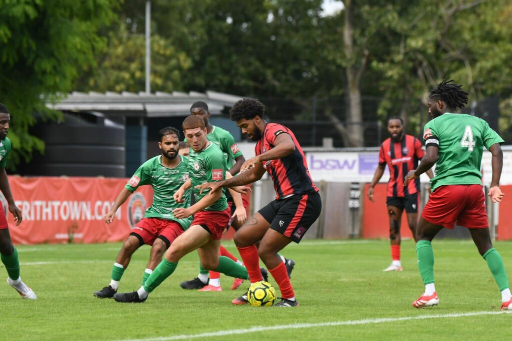 Erith Town: Firth; Ash, Jayaguru, Peter, Dythe; Turner, Jeffrey, Amali (Oluwasemo 46); Connor (Valler 65); Taylor, Maxime-Samuels (Milton 65). Unused sub: Duncan, Manwaring, McGeehan.