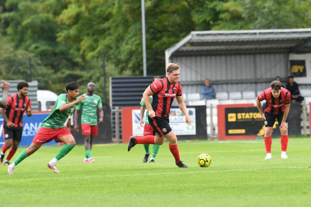 After a delay to the kick off due to a Sporting Bengal player struggling to remove a stud from a piercing, Erith’s Sairel Amali hit a shot towards the far post that Laurence Whymark had to get down to save. At the other end, Andre Embalo couldn’t get a shot away, however, it fell into the path of Brandy Makuendi who screwed his effort well wide.