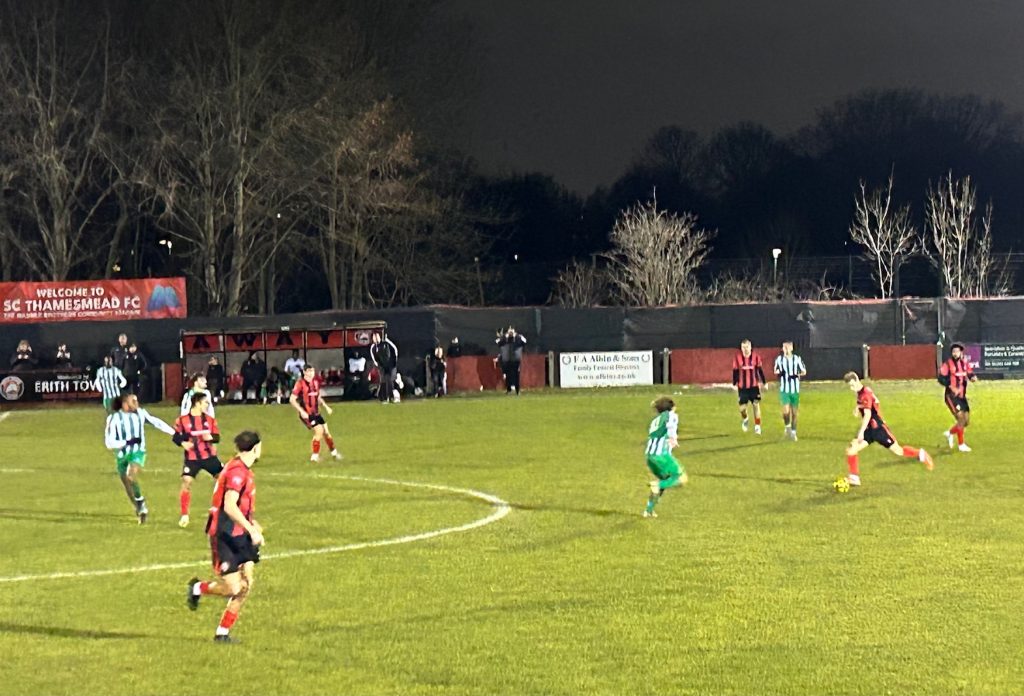 Erith Town: Firth; Nesbitt, Jayaguru, Wenham; Hilden (Valler 63); Northwood, Turner, Richards, Dythe (Christmas 71); Oladipo (O’Mara-Knapp 89), Brooke (Bakunda-Hatega 63).