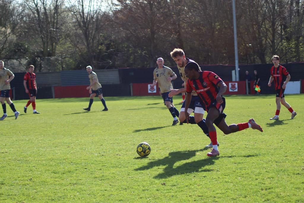 On Saturday, Aaron Jeffery’s team travelled to Deal Town and crashed to a heavy defeat. Owen Wilkinson and Rory Smith gave the Hoops a half time lead then Smith, who also plays cricket for Sandwich Town, added a third seven minutes after the restart. Alfie Foster and Wes Hennessey were also on target before Jabari Christmas scored a consolation for the Dockers deep into stoppage time. As a result, Erith have dropped back into the bottom four, one point behind Hassocks, but with a game in hand.