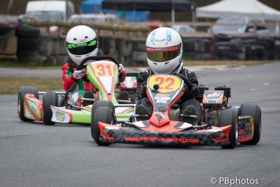The second final was for the Pro kart heavy drivers, this class has been the main stay of four stroke karting for many years, with the twin engine machines providing former World Touring Car champion and now works Lada driver – Rob Huff with his starting point into karting and motorsport in general. Saturday’s final for the class saw Trevor Bull beat Steve Turner comfortably to win; Trevor was almost embarrassed by his ease of victory and will surely be hoping for closer competition for round two.