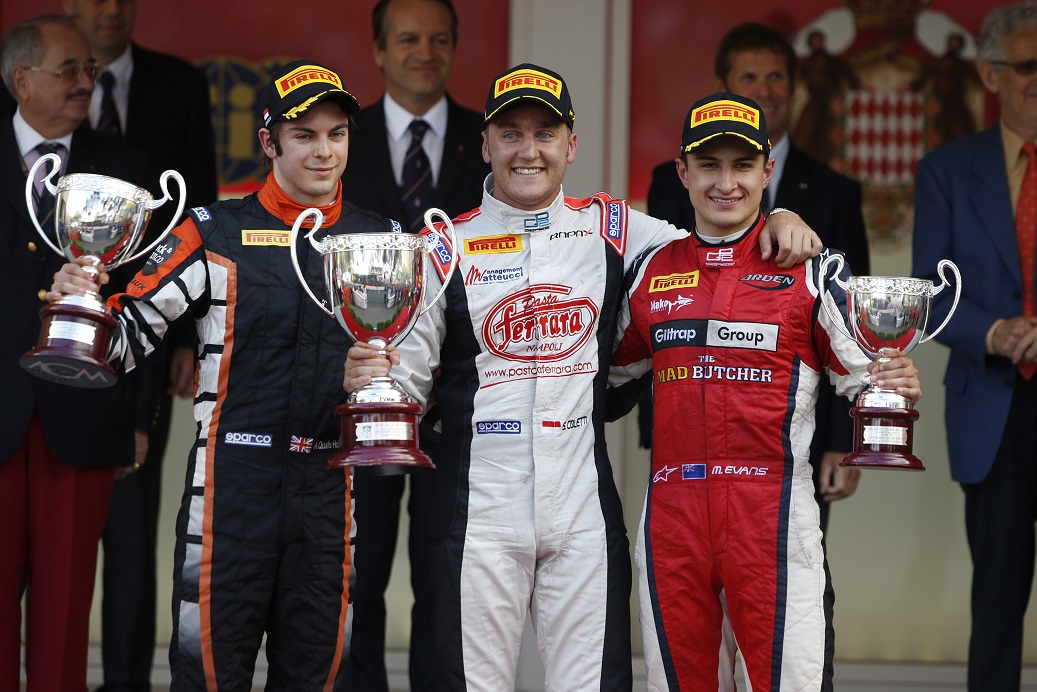 Adrian Quaife-Hobbs on the podium at Monaco