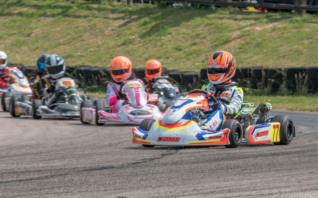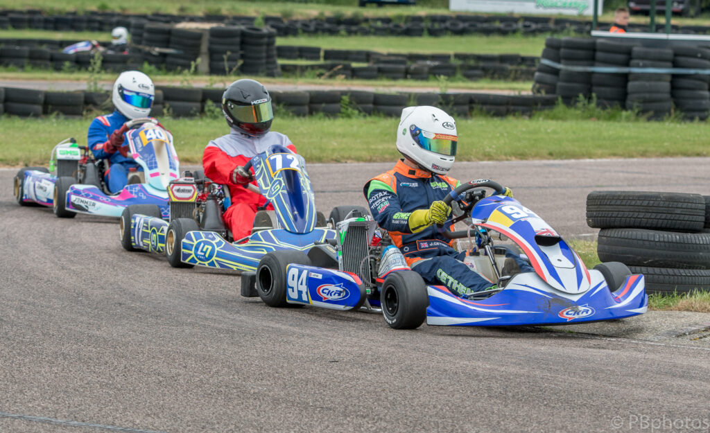 Jacob Hobbs shared the 2nd row with the Jenner kart of Jamieson, Alfy Hemingway and Kristian Stefanov were next up on the 3rd row. Finlay Underwood shared the 4th row with Blueberry’s Ryan Welsh. The fifth was made up of Project Ones Felix Stolkin and Blueberry’s Luke Broadbent.