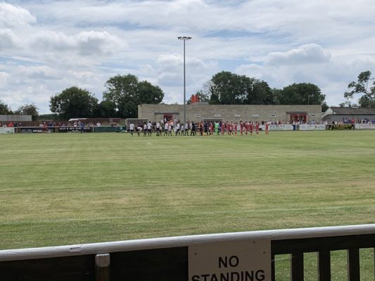 James Myles then had the chance to put Faversham on the scoresheet, their best of the half but he dragged his shot straight at Jack Bonham.