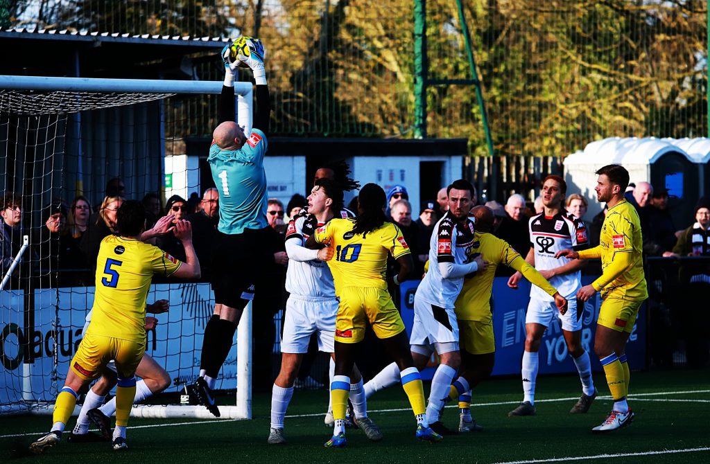 Faversham were shell shocked and struggled to make meaningful chances with Campbell’s corner, which needed touching behind by Grosshart, the home sides only real clear chance. Newman’s introduction fifteen minutes from time reignited their belief however, especially when Newman himself smashed home with ten minutes left. Kwayie then pulled a second goal back almost instantly with a trademark predators finish to set up a grandstand finale that reached a remarkable climax when Ethan Smith finally got the better of Grosshart to draw the game level at 3-3 deep into stoppage time.