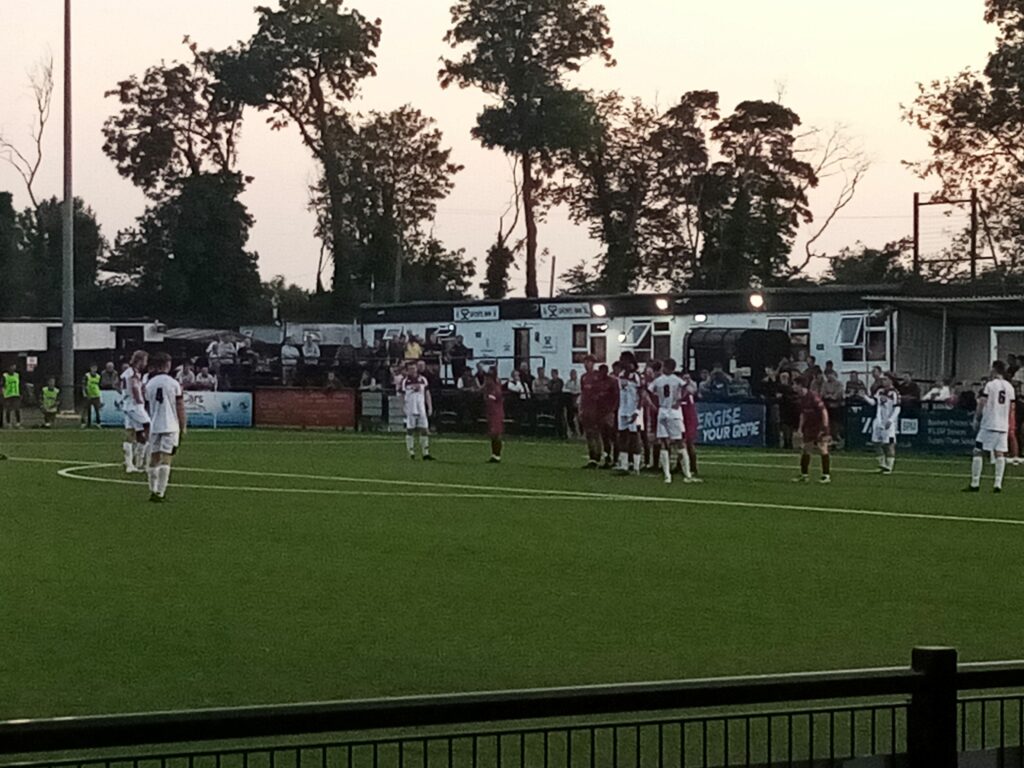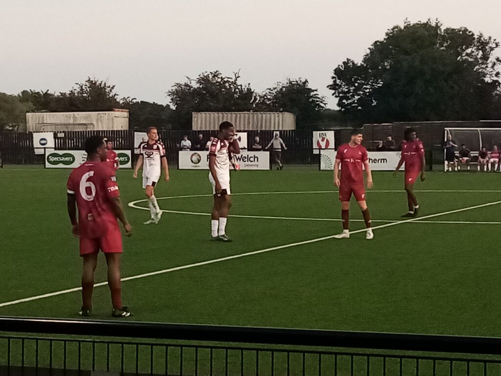 Fagg smacked a thirty yard drive off the bar before the visitors rallied with Sam Pagano going close twice – first with a free kick that bounced off the top of the bar and then the Balham man was denied by a brilliant Russell save – the save of the night!