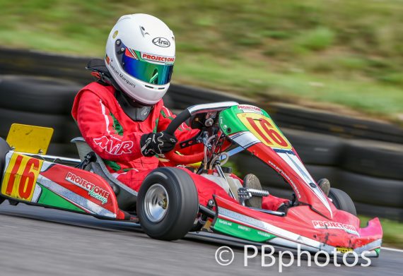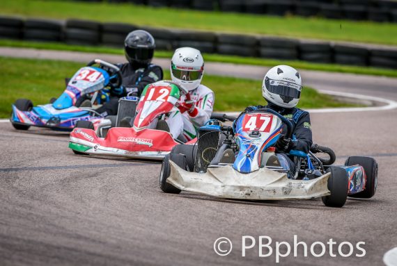 A special mention must go out to Damien Baruss-Haggett who had a frightening accident in Pre Final 1, when he collected a Shields spun kart at turn 1. Damien rose from the floor to a huge round of applause as he bravely made his way into the circuit Ambulance. The medics later told me that his safety equipment had served its purpose well with Damien suffering bruising and a cut, they assured me that even though his day’s racing was curtailed, he had looked more cheerful on a visit later in the day.