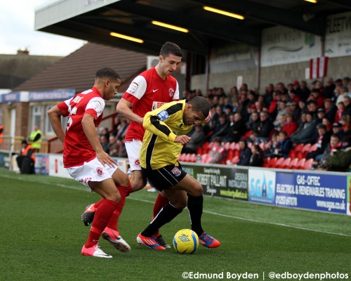 The second half showed a marked improvement from Mark Goldberg’s side. Pierre Jospeh-Dubois and Richard Pacquette went close and Bromley should have had a penalty when Pacquette though on goal was brought down by Youl Mawene, but Referee Joyce awarded a free kick on the edge of the box and only showed Fleetwood’s captain a yellow card.