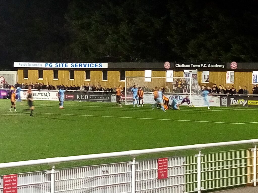 Goals either side of half time from Donell Thomas and Ade Yusuff gave Invicta that they really deserved and in truth was rarely threatened, as the pressure continued to grow on George Elokobi as the Stones crashed out to a team in a lower division – this was the first time since 2011 that the Stones haven’t featured beyond the Second Qualifying Round and a very long way from the dizzy heights of Ipswich Town and Coventry City which were just eighteen months ago. The same fans who had reveled in that Cup campaign disappeared into the Medway night extremely disappointed at their sides display as Folkestone comfortably eased into Monday’s draw.