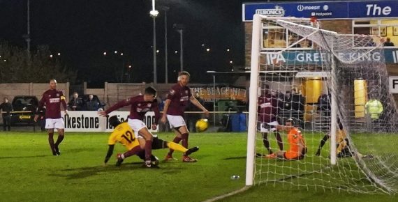 There had been little between lower mid-table Folkestone and their eighth placed first time visitors in a good competitive game – The Scholars having gone close a hitting the woodwork very early on before Neil Cugley’s side started to gain the upper hand.