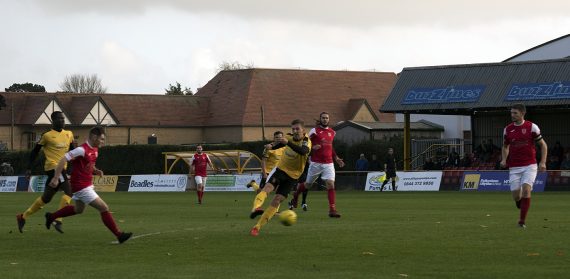 Ade Yusuff did everything but score in this game, twice hitting the woodwork and forcing a couple of testing saves from the goalkeeper while the  visitors failed to take any of several reasonable chances at the other end where sponsors’ man of the match Finn O’Mara and the back to fitness Nat Blanks and Phil Starkey all played well.