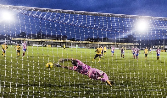 They eventually broke the deadlock when Yusuff pushed the ball sideways and strike partner Ian Draycott lifted a splendid lob over former Hastings keeper Josh Pelling to give Folkestone the lead on 36 minutes.