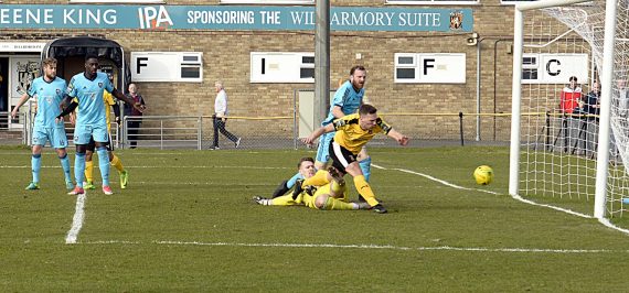 But again the visitors hit back too quickly for the home fans’ liking from a free-kick that was converted by Adam Goode to reduce the deficit to two goals once again.