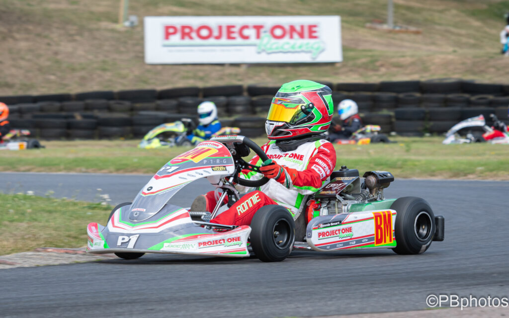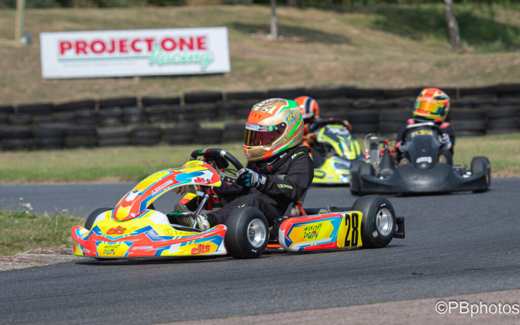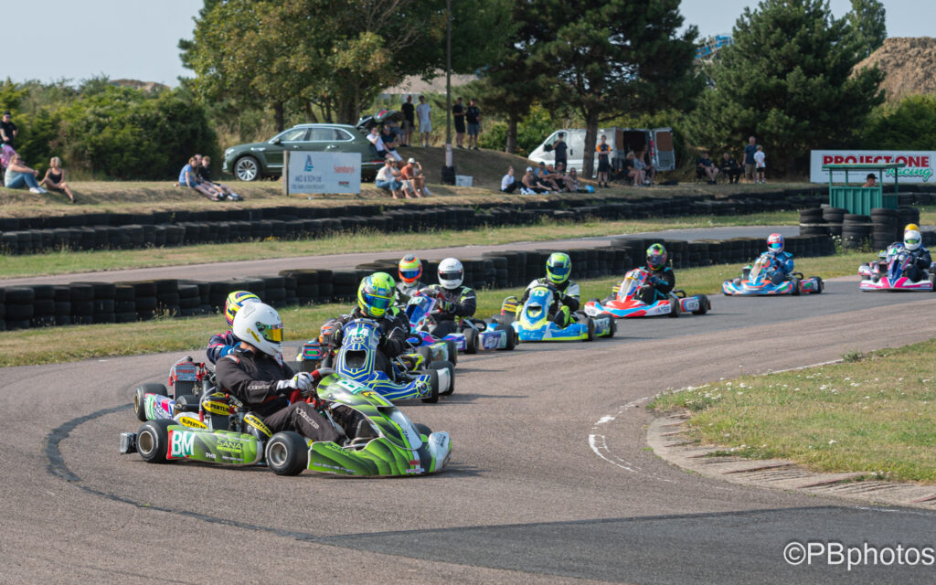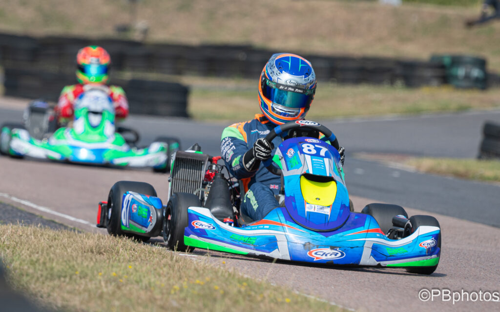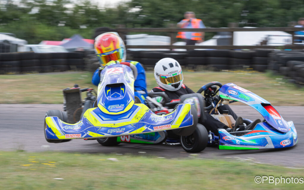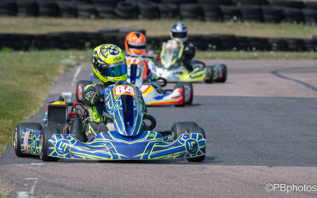 Hutchings took the win from Clark by just 0.18s after 16 laps, Gibbons who had closed on the two dueling ahead finished 3rd just under a second behind, Deacon held off Anscombe as the pair finished together in 4th and 5th. Goodwin took 6th and top Masters driver, crowning a great return to the sport after a long lay off, with his son Max’s kart. Marrison finished 7th, Wardale 8th, Vito Dacres 9th and John Nye 10th.