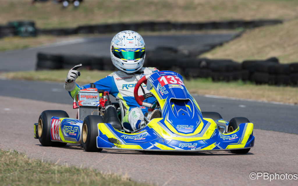 Nelson Taylor recorded the fastest Q2 time in the Rotax Inter class to take the pole for Sunday’s Pre-Final. Akille Nane Gainnone had been quickest in Q1 before recording the 2nd fastest time in Q2. Alfie Mew took 3rd, Harrison Page 4th, Cordell Sinclair 5th and Jenson Ayrton Floyde-Oram 6th.