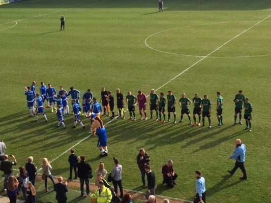 This ignited the Rainham End and wave after wave of blue shirts poured forward. The second penalty came from nothing as a hopeful ball to keep an attack going bounced off the arm of Iron skipper Dawson, and to a huge roar from behind the goal, Mr Lewis pointed for a second penalty. This time, Wright sent Daniels the wrong way, placing his kick to the left side of the goal.