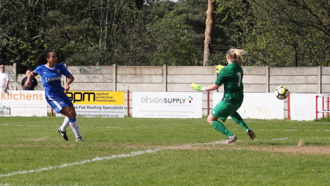 Despite the dismissal and reduction to ten players. Kallie Balfour was played through on goal by a smart pass over the QPR defence. QPR goalkeeper Lauren Dolbear closed down the space and as Balfour took her shot blocked the effort. Both took a knock in the process as they collided.