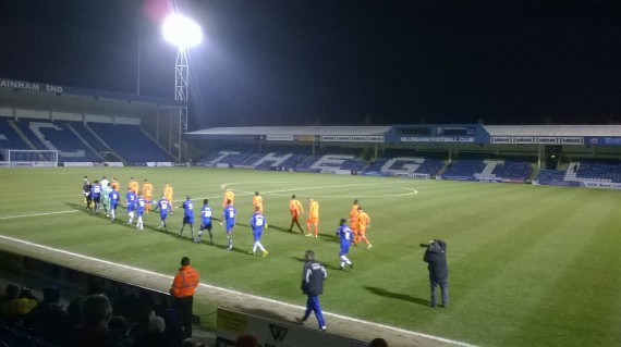 Gillingham line up: Glenn Morris, Callum Emptage, Mitchell Dickenson, Leon Legge, Aidan Blanchard, Jermaine McGlashan, Danny Galbraith, Brennan Dickenson, Devante McKain, Mahlon Romeo (Greg Cundle 31), Charlie Webster.