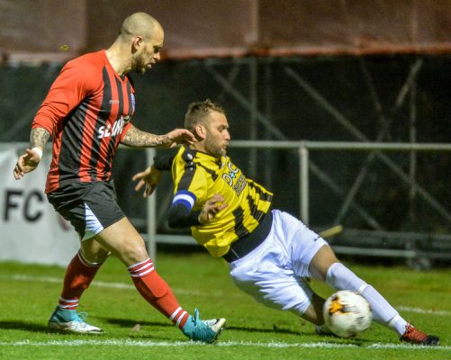 Sixty seven minutes were on the clock when Gannon burst into the penalty area and nicked it past the out-rushing Dean Nash. The Glebe goalkeeper clattered into the Dockers’ striker and left him in a heap.