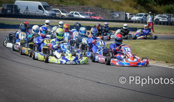 Over the closing laps Perilly drove beautifully to hold off persistent attacks from those behind and took the win by just 0.033 seconds from an attacking Russell, Frost took 3rd, driving a clever race to secure the last podium place from Baruss-Haggett and the flying Lloyd who had taken the fastest lap during his charge back up the field. Just over half a second covered the five as they took the chequered flag as one, with Nathan Marques closing in behind them. Barrus-Haggett suffered a post-race exclusion from the event, so the final positions featured, Perilly, Russell, Frost, Lloyd, Marques in 5th, Ethan Barford shadowing Marques in 6th, Chris Doble 7th and Jack Theobald in 8th. The fastest lap was recorded by the #17 kart of Freddie Lloyd.