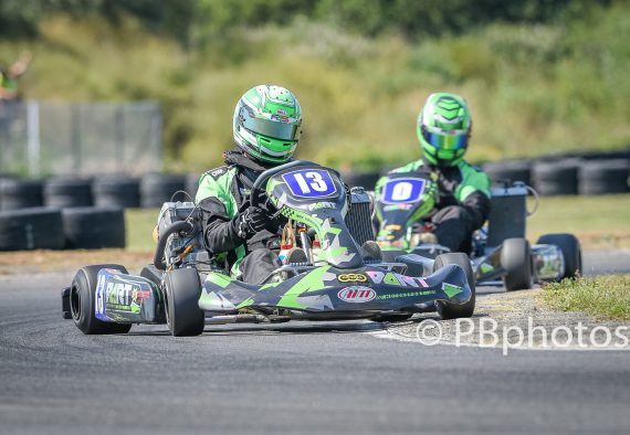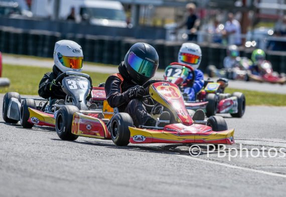 Ethan Bentley had a great day in his Clarke Karts machine, taking wins in the heat, Pre final and Grand final of the Clubman Standard class. His teammate Harrison Crowther ran with him until he slipped back behind Harry Chamberlin on lap 10th of the 15 Lap duration. Beau Sullivan ran 4th ahead of a frenetic scrap which Mikey Porter came out on top of to take 5th, featuring in the scrap was Sonny Mortensen, who just nipped ahead of Jack Minter-Young on the last lap to take 6th.