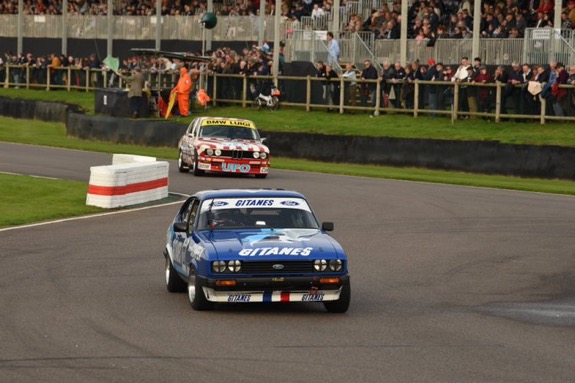 On his Goodwood Members Meeting debut, BRDC ‘Superstar’ Jake Hill took Pole Position in the Gerry Marshall Trophy in slippery conditions on Saturday, before taking an impressive Victory in the Ric Wood Motorsport sleek ‘Gitanes’ liveried 1978 Ford Capri 3.0, in a frantic race on Sunday afternoon in the sunshine of West Sussex.