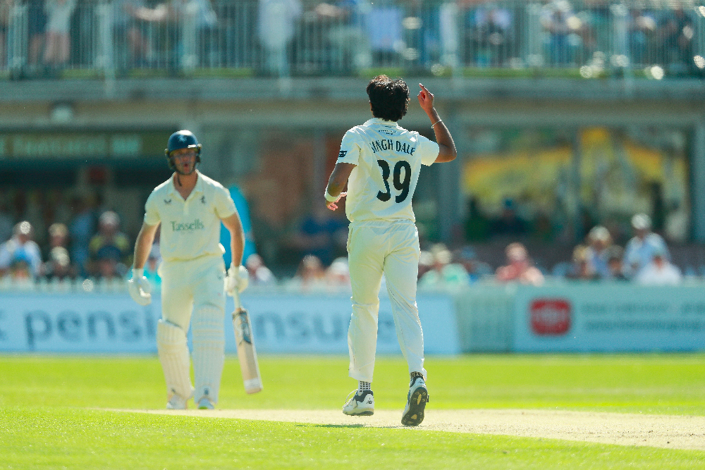 Presented with an opportunity to improve upon the career-best 6-41 he took against Worcestershire at New Road in April 2023, Singh Dale ran in hard, located Ball’s outside edge and raised his arm in celebration before even Bracey had pouched the catch that further reduced the visitors to 414-9.