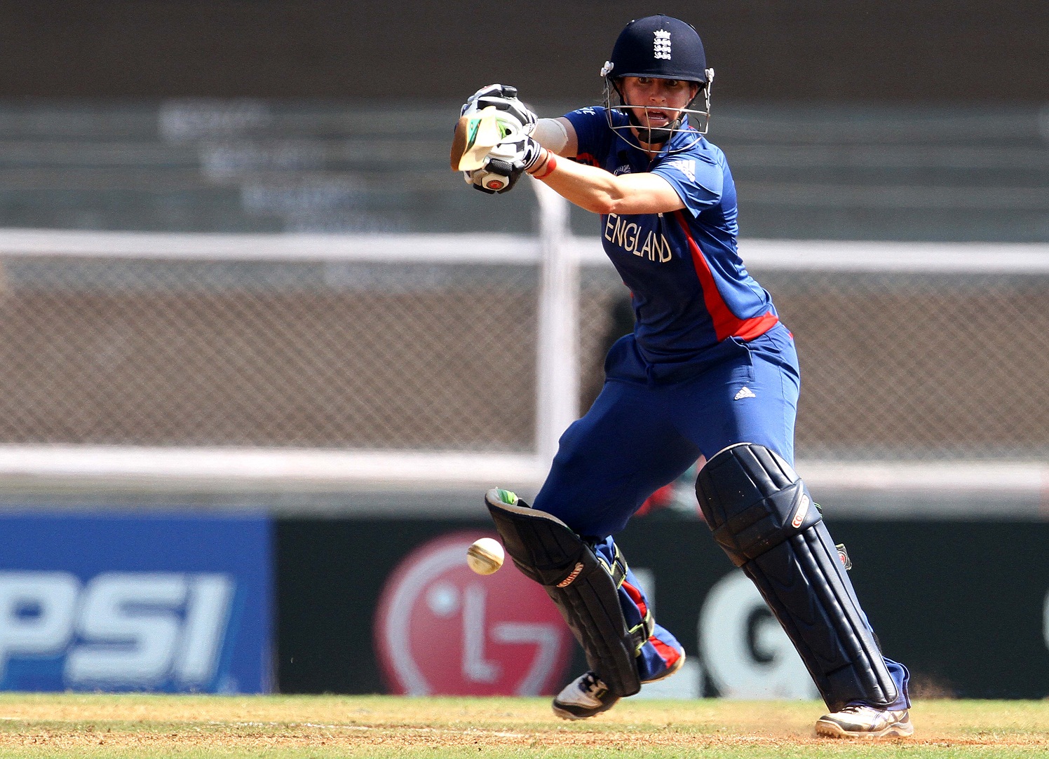 Lydia Greenway of England plays a shot during the ICC Women World Cup match between Australia and England played at the Brabourne stadium in Mumbai, India on February 08, 2013. (ICC/SOLARIS IMAGES)