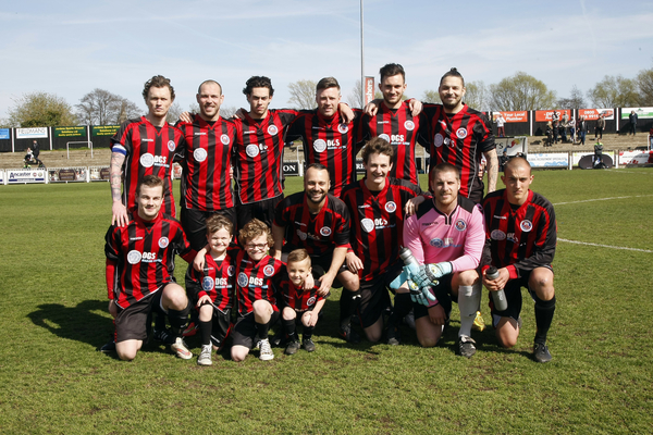 Kent Senior Trophy Final 2015. Greenwich Borough v Hollands and Blair. Greenwich in red and black stripes.