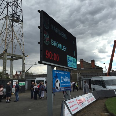 With barely three minutes on the clock Andy Monkhouse was given space and time to pick out Omar Bogle in the penalty area, Bogle neatly chested down into the path of Padriag Amond who made no mistake with a calm sidefoot finish past Alan Julian. The Bromley defence was clearly rattled at the quick start from the Mariners and the team as a whole appeared very unsuited to their requirements within the team shape. Consequently it came as no surprise when less than three minutes later they found themselves two goals down albeit in controversial circumstances.