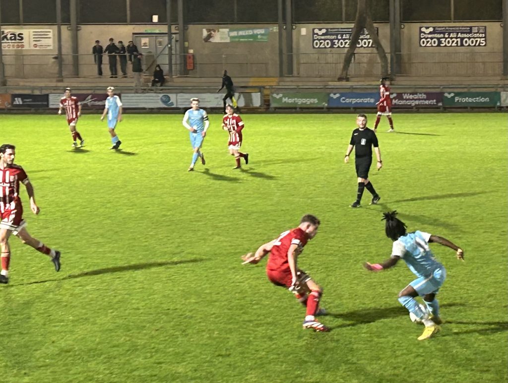 In the latter stages of the first half, Halls enjoyed the better of the exchanges and Muraino Banjoko was twice off target before Bayford was unable to keep his free kick down.