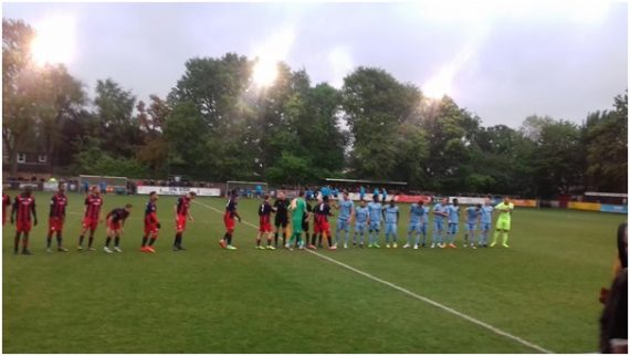 In the end Ebbsfleet comfortably saw out the remaining minutes to take a goal lead into Sunday’s second leg at Stonebridge Road. Hampton showed they could still be difficult opponents so shouldn’t be taken lightly but Ebbsfleet just had that bit of extra quality where it mattered and the possibility of a mouth watering final with Dartford is still very much on following the Darts goalless draw at Chelmsford in the other semi final tie.