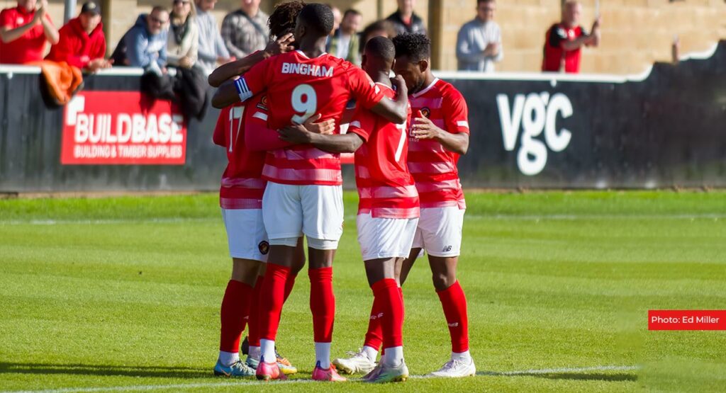 But it was another substitute, Fleet’s Elliott Romain, who came closest to affecting the scoreline with a good shot saved by Sobte but ultimately it was of no importance as the whistle signalled Fleet’s second successive appearance in the Fourth Qualifying Round, to be played in two weeks’ time.