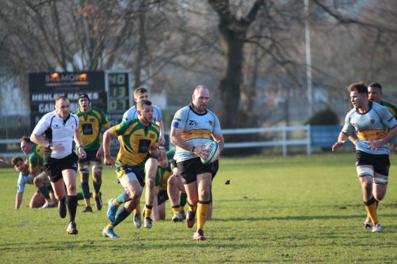 An early Hawks try, scored by prop Dave Manning, was cancelled out by a massive catch and drive which ended with Tom Rogers celebrating his 200th first team appearance with the touch down and Will Hilton converting. They fell behind again after Dan Smart’s yellow card for a technical offence and during his ten minute absence George Jackson kicked a penalty goal and wing Sam Portland was given an overlap for Henley’s second try.