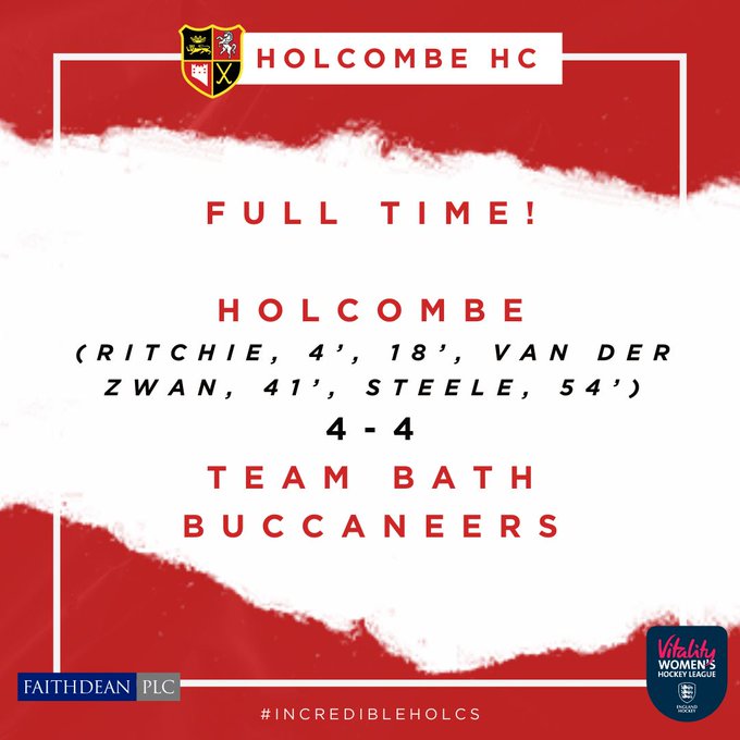 Holcombe extended their unbeaten run to five matches in all competitions with Saturday’s 4-4 home draw against Vitality Division One South strugglers Team Bath Buccaneers.