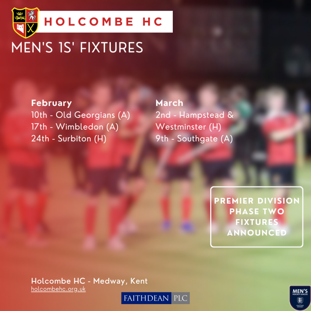 Holcombe’s men’s fixtures for Phase Two of the Premier Division season have been announced.