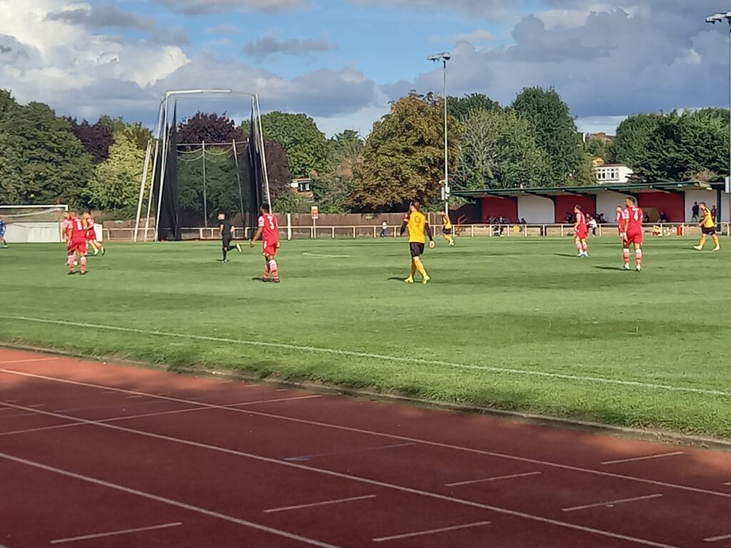Hornchurch though opened the scoring in the 17th minute when a free kick from Jack Munns into the box wasn’t cleared and Ogunwamide down the left found Higgins who crisply fired into the bottom right corner for a well taken goal.