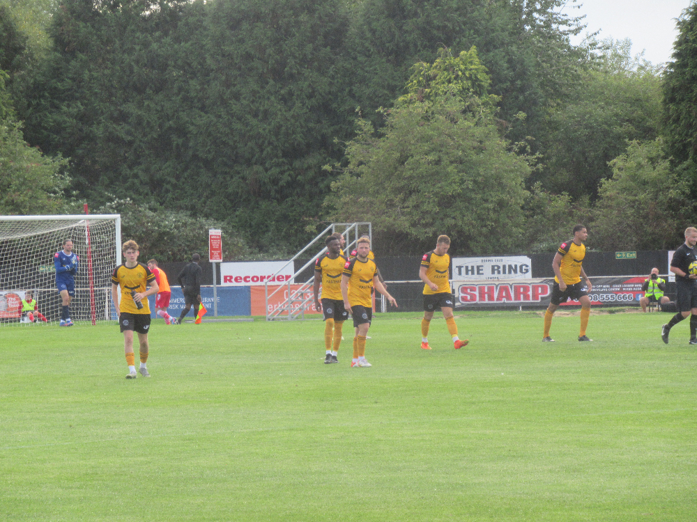 Five minutes from time, Hornchurch were awarded a free kick 20 yards from goal following a foul by Sam Wood was perhaps harshly booked and certainly didn’t warrant a red card. From the free kick, Higgins’ shot went through the wall and Rowley couldn’t quite get his hand to the ball to prevent it from going into the net and put Hornchuch back in front.