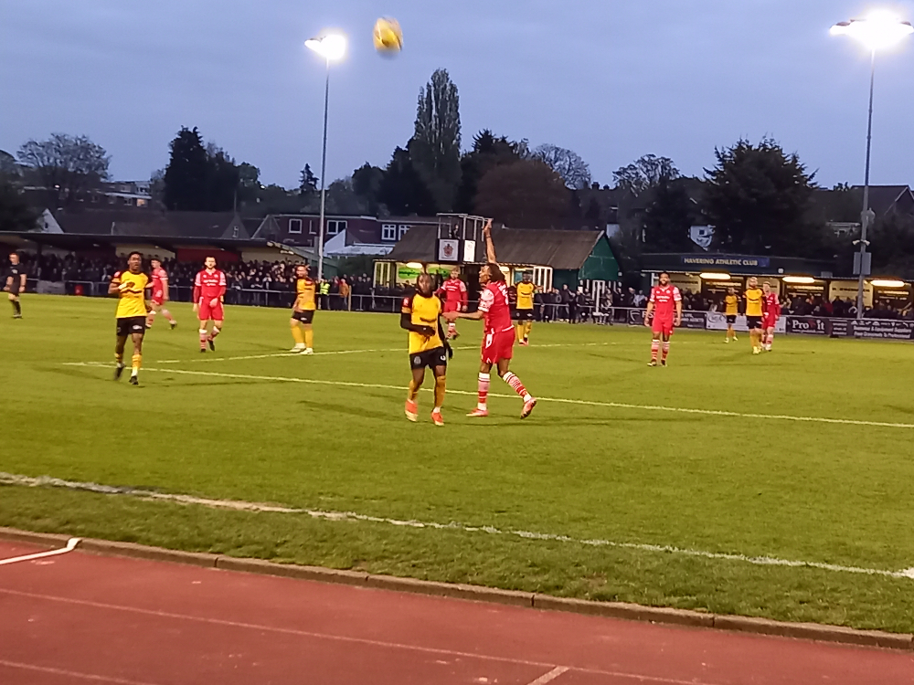 Hornchurch made the breakthrough in the 14th minute when from a free kick down the left, Tom Wraight’s ball into the area was flicked on by Liam Nash and Sam Higgins was on hand despite possible claims for offside to turn in his 31st goal of the season from close range.