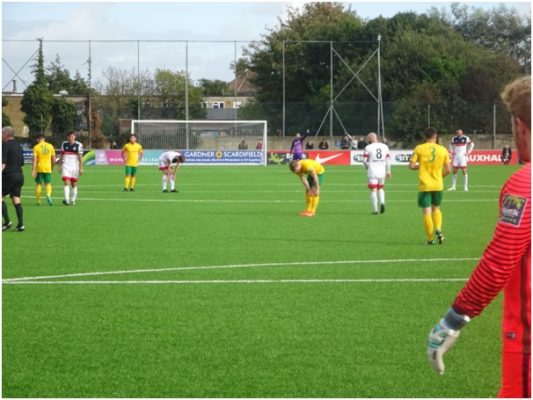 There were a couple of changes to the side which beat Herne Bay last weekend. New signing Kyron Lightfoot and Aaron Rhule started in place of the injured Ben Mundele and Timi Osidobu. Dean Carpenter filled in at left back.