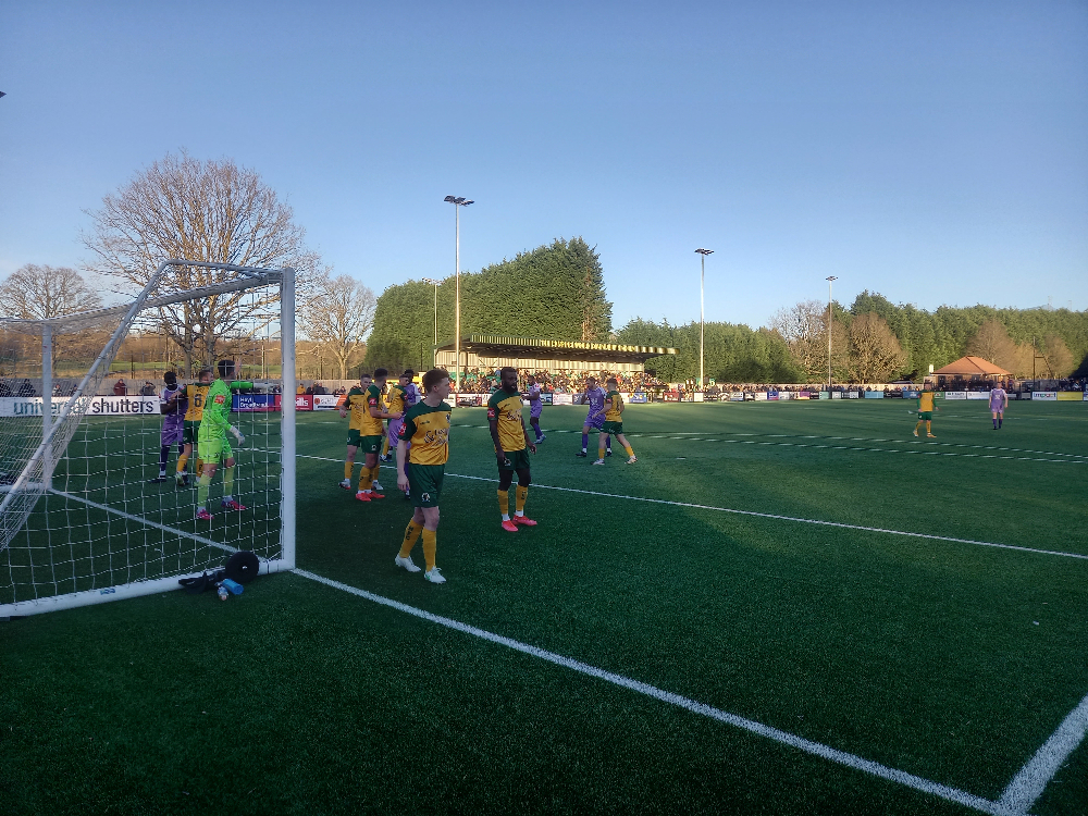 Cray were just adjusting to the substitution when Horsham drew level after the award of a free kick just outside the area down the left. From the free kick, Tom Richards put over a great cross towards the far post where Tom Day rose to power home an impressive header to make it 1-1.