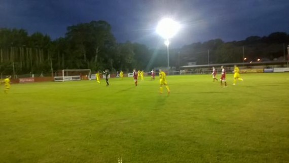 Hythe’s back four though was looking lethargic against the three pacy Walton forwards, but it took a moment of misfortune to gift Walton the lead. Jordan Cheadle’s long freekick into the Hythe area was met by a powerful header from Laurence Harvey. The header, though, caught Ben Wilson amidships, and bounced to Omar Foulkes, who turned and fired beyond Mant.