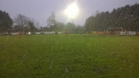 As the game went on the rain turned to snow as the sun dropped beneath the main stand of Reachfields Stadium. This snow got heavier and heavier as the two teams continued to try and play, tough conditions and the decreasing state of the pitch forced both teams to take more risks with the option of quick passes gone. During the final twenty minutes of the game both teams had very few opportunities between them.
